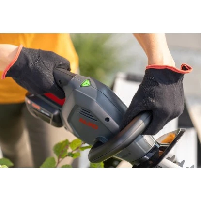 Die sehr leichte und netzunabhängige Akku-Heckenschere ermöglicht Ihnen einen bequemen Aktionsradius ohne Kabelwirrwarr und schließt die Gefahr aus, ein Elektrokabel unabsichtlich zu durchtrennen. Für eine leichte Handhabung zum sicheren, bequemen Arbeiten in jeder Position sorgt der ergonomisch geformte Handgriff.