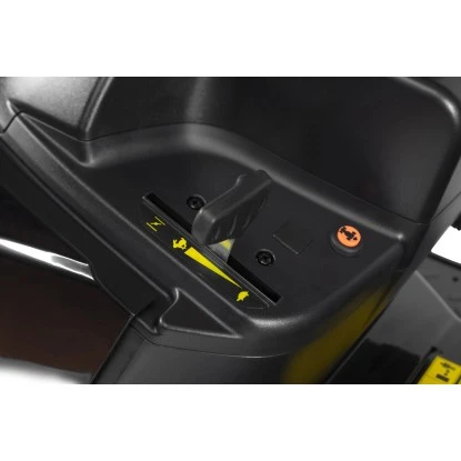 84 cm Schnittbreite stehen zur Verfügung, die sich in 7 Stufen von 25 mm bis 80 mm in ihrer Schnitthöhe regulieren lassen. Hierbei wird durch die Tasträder stets sichergestellt, dass ein Kontakt des Mähwerks mit dem Boden vermieden wird.