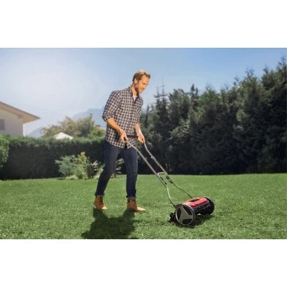 Der Handrasenmäher GE-HM 38 S ist ein robustes und funktionales Gerät für jeden Hobbygärtner, mit dem sich kleinere Rasenflächen leise, kraftsparend und umweltfreundlich mähen lassen. Die besondere, berührungslose Schneidetechnik erleichtert das Arbeiten ungemein, da nur geringe Reibungsverluste zwischen Messer und Gegenmesser entstehen. Somit reduziert sich nicht nur der notwendige Kraftaufwand, sondern auch die Lautstärke. Die Grashalme werden tief und sauber abgeschnitten. Es entsteht ein feines Rasenbild, fast wie mit einer Schere geschnitten. Dieser hochwertige Spindelmäher verfügt über eine leichtgängige, kugelgelagerte Mähspindel mit 5 präzisionsgeschliffenen Schneidemessern aus Qualitätsstahl und ermöglicht dank vierstufiger Schnitthöhenverstellung eine exakte Anpassung der Schnitthöhe. Die Schneidetechnik des GE-HM 38 S ermöglicht sogar „golfrasentaugliche“ Ergebnisse. Zusätzlich ist der Rasenmäher mit einer Kunststoff-Laufwalze mit 50 mm Durchmesser und großflächigen, rasenschonenden Rädern ausgestattet. Dieses Gerät wird für Rasenflächen bis 250 m² empfohlen.
