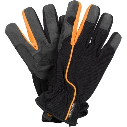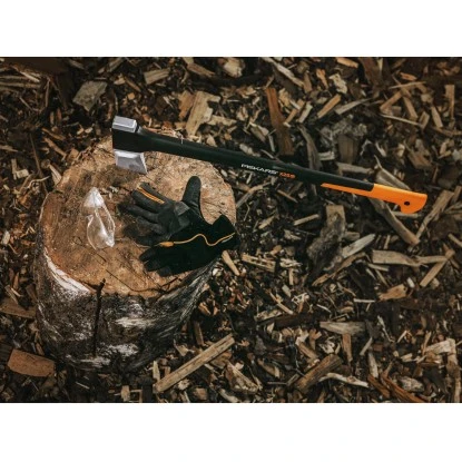 Mit dem Fiskars Garten-Arbeitshandschuh haben Sie alles im Griff. In Kombination mit den rutschfesten Griffen der Fiskars Geräte bietet der neue Garten-Arbeitshandschuh einen optimalen Halt und schützt die Hände zudem vor Holzsplittern und Kälte. Die Handinnenflächen sind mit einer strapazierfähigen und rutschfesten Beschichtung ausgestattet. Dank kleiner Aussparungen wölbt sich die Beschichtung beim Schließen der Hand nicht nach oben. Somit liegt der Handschuh überall gleichmäßig an und gewährleistet eine optimale Griffigkeit. Ein Gummizug sorgt für eine perfekte Passform und eine rutschfeste Öse am Schaft erleichtert das Anziehen der Handschuhe. Mit einem atmungsaktiven Handrücken, verstärkten Fingerkuppen und Innenflächen. Damit ist der Handschuh der ideale Begleiter bei allen Arbeiten in Wald und Garten – besonders beim Herstellen von Brennholz.