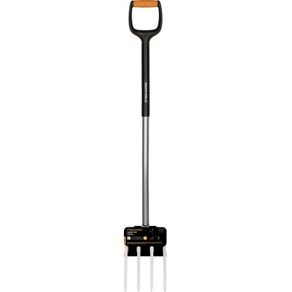 Die Spatengabel kann zum Anheben, Wenden und Ausbreiten von losen Materialien, wie Gras, Heu und Kompost verwendet werden. Der ergonomische Griff und die Länge des Stiels sorgen während Ihrer Gartenarbeit für eine bequeme Position der Hand sowie eine aufrechte Haltung. Die Gabel verfügt über einen ergonomischen D-Griff, der ein- oder beidhändig benutzt werden kann. Die rutschfeste Beschichtung bietet einen sicheren Halt. Die leichten, aber dennoch belastbaren Zinken der Spatengabel sind ideal zum Umgraben von etwas härterem und steinigem Boden geeignet, da sie sich leicht in den Boden hineindrücken und wieder herausziehen lassen.