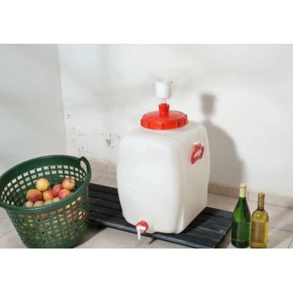 Das rechteckige Getränkefass Comfort ist ideal zum Lagern und Aufbewahren geeignet. Das Fass kann mit einem Inhalt von 60 l befüllt werden und ist aus lebensmittelechtem und UV-stabilem Kunststoff. Im Lieferumfang sind ein luftdicht verschließbarer Schraubdeckel, eine Schraubkappe mit Loch, eine Gärglocke sowie ein Auslaufhahn enthalten.