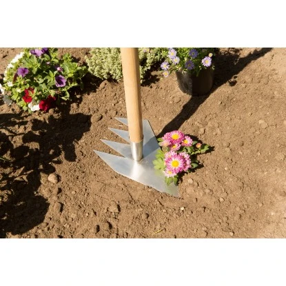Die 8in1 Ruwi Multiharke ist aus poliertem Edelstahl mit einem stabilem Naturholz-Stiel gefertigt und macht auch bei starker Beanspruchung nicht schlapp. Sie ist für Rechts- und Linkshänder geeignet. Holen Sie sich diesen Alleskönner jetzt auch in Ihren Garten.
