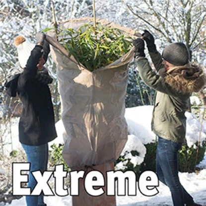 Pflanzen mit ausladenden Kronen oder Rosen mit dornigen Ästen lassen sich bequem in den Thermomantel XXL hüllen. Den Vliesmantel Größe XXL seitlich um die Pflanze legen und den Reißverschluss von unten nach oben zuziehen. Zum Schluss obere und untere Kordel zuziehen. Im Bereich der Krone ist der Thermomantel durchlässig für Licht und Feuchte, vermindert aber Verdunstung und schützt vor Spannungsrissen in der Rinde.